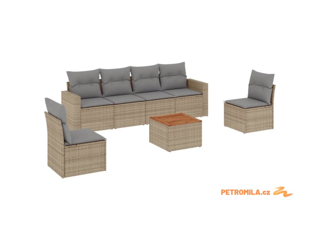 7dílná zahradní sedací souprava a podušky mix béžové polyratan