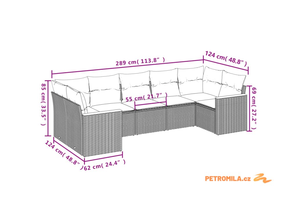 Sada zahradních pohovek s polštářem 8 pcs Béžová Poly ratan