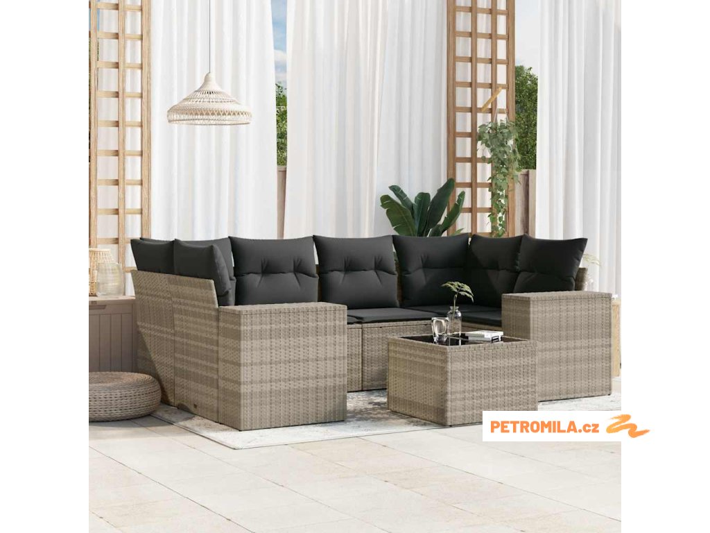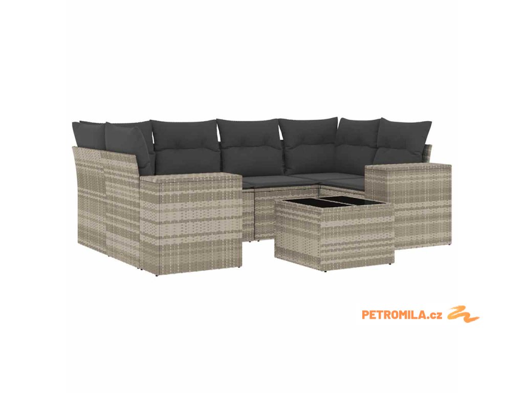 7dílná zahradní sedací souprava a podušky světle šedá polyratan
