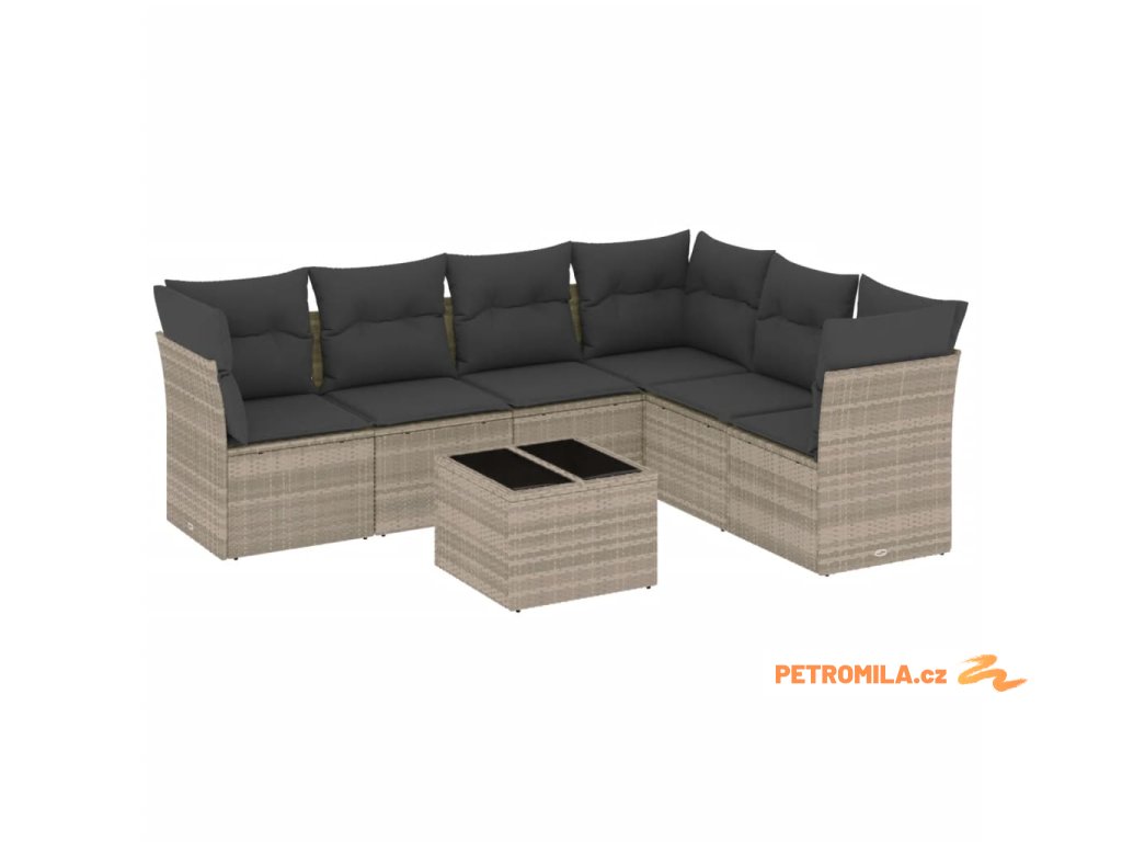 7dílná zahradní sedací souprava a podušky světle šedá polyratan