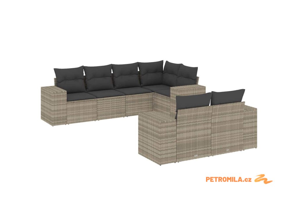 7dílná zahradní sedací souprava a podušky světle šedá polyratan