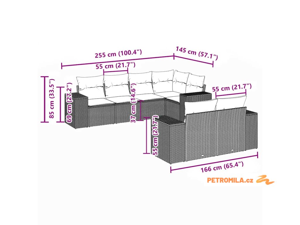 Sada zahradních pohovek s polštářem 8 pcs Šedá Poly ratan