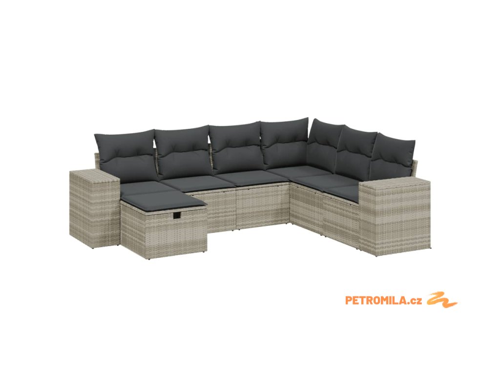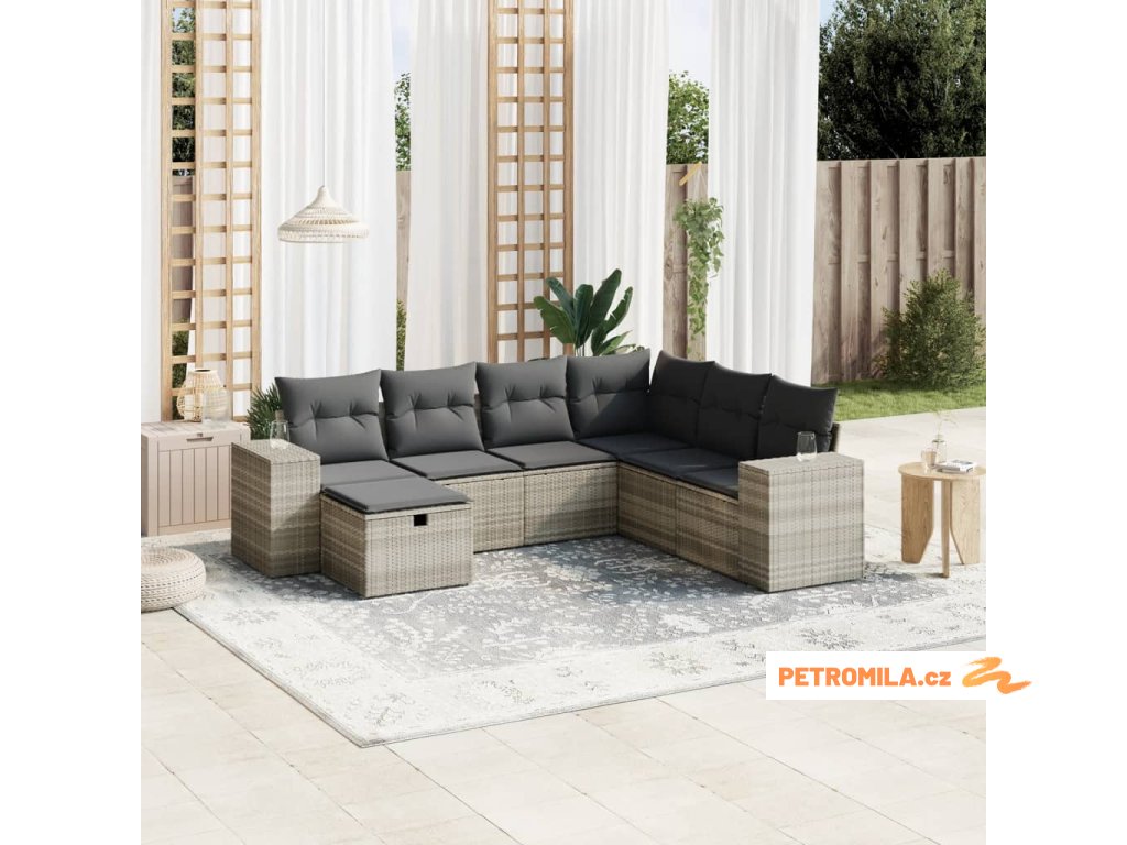 7dílná zahradní sedací souprava a podušky světle šedá polyratan