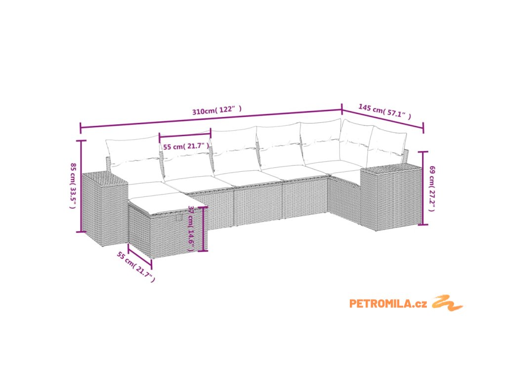 Tato zahradní sedací souprava je dokonalým doplňkem vaší zahrady, terasy nebo dvorku a poskytne vám pohodlné a příjemné místo, kde si můžete povídat s rodinou a přáteli nebo jen tak odpočívat a užívat si pobyt venku.
