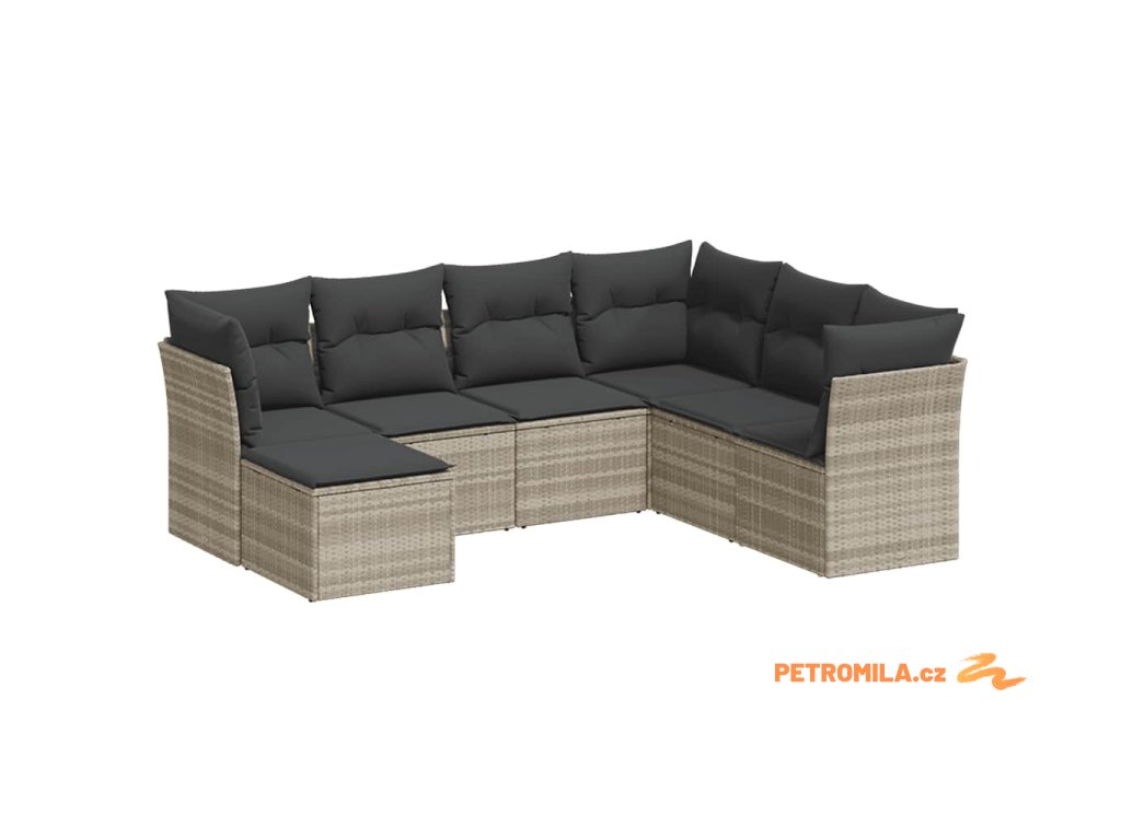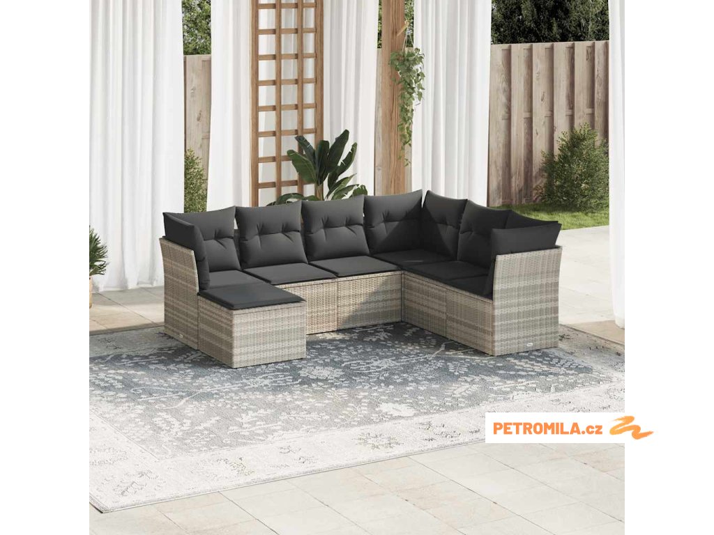 7dílná zahradní sedací souprava a podušky světle šedá polyratan