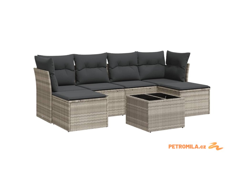 7dílná zahradní sedací souprava a podušky světle šedá polyratan