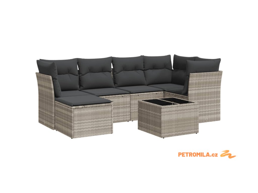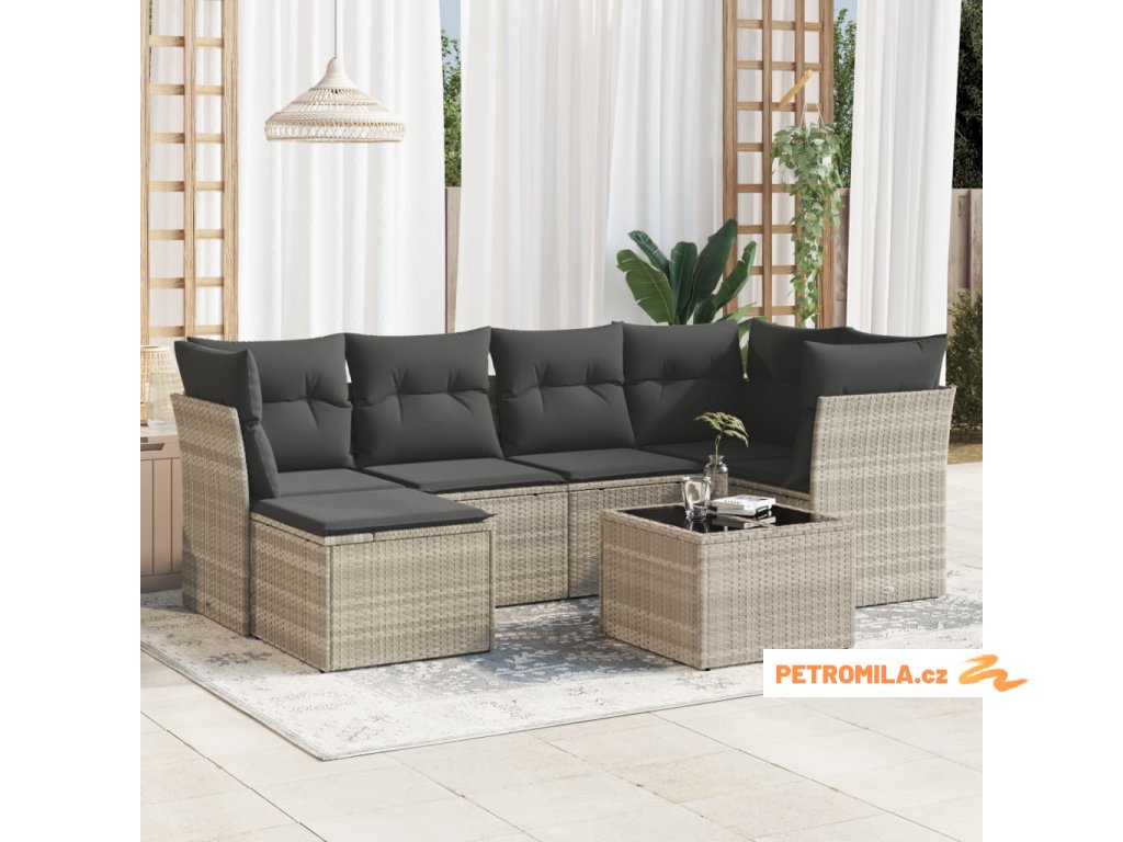 7dílná zahradní sedací souprava a podušky světle šedá polyratan