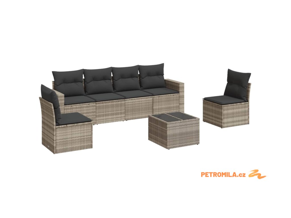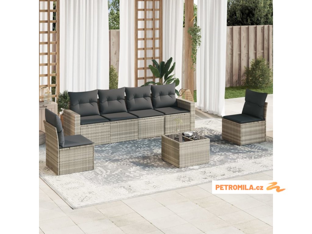 7dílná zahradní sedací souprava a podušky světle šedá polyratan
