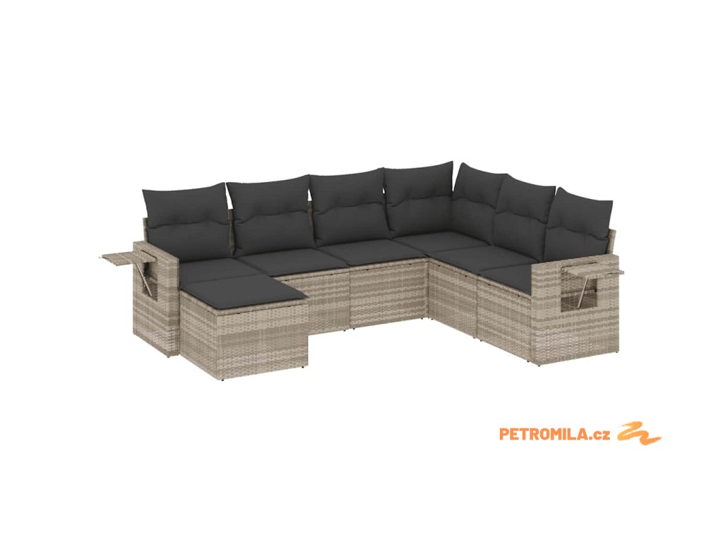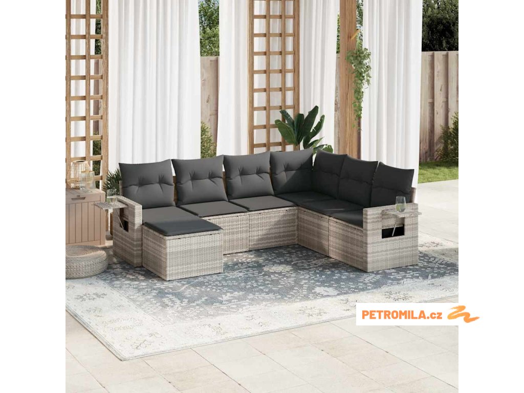 7dílná zahradní sedací souprava a podušky světle šedá polyratan