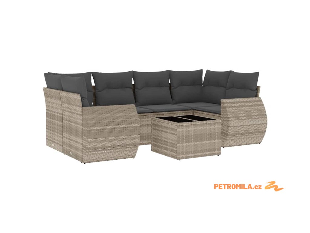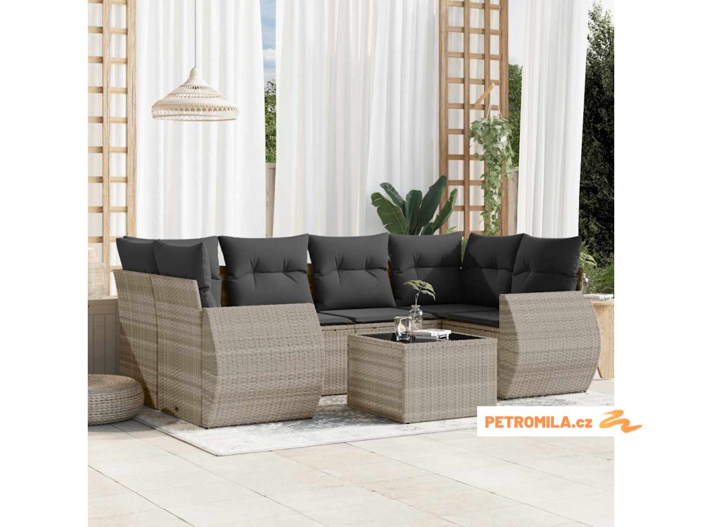 7dílná zahradní sedací souprava a podušky světle šedá polyratan