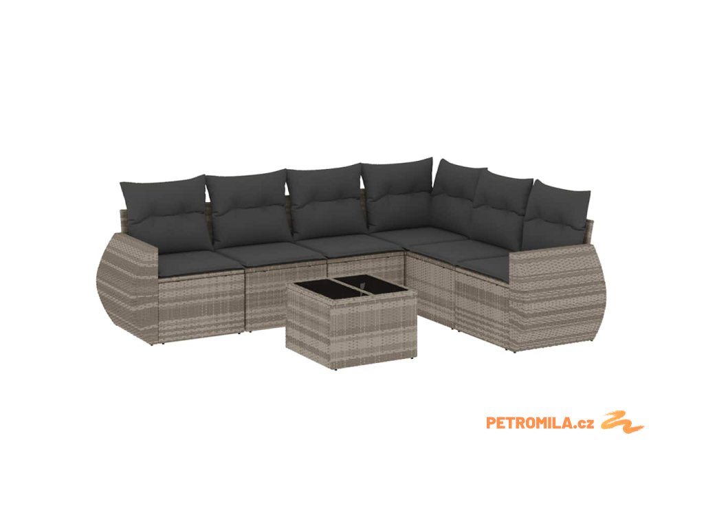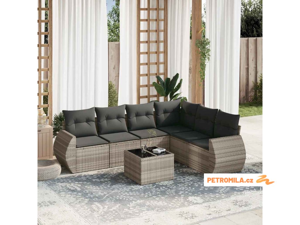7dílná zahradní sedací souprava a podušky světle šedá polyratan