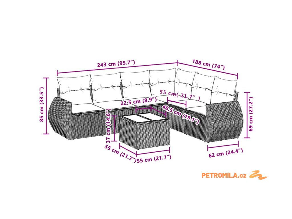 Tato zahradní sedací souprava je dokonalým doplňkem vaší zahrady, terasy nebo dvorku a poskytne vám pohodlné a příjemné místo, kde si můžete povídat s rodinou a přáteli nebo jen tak odpočívat a užívat si pobyt venku.