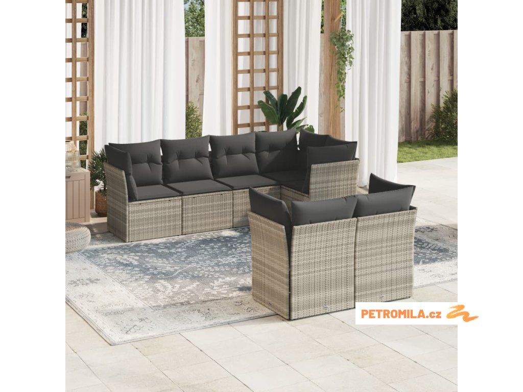 7dílná zahradní sedací souprava a podušky světle šedá polyratan