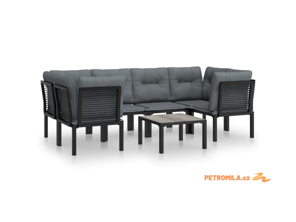 7dílná zahradní sedací souprava černá a šedá polyratan