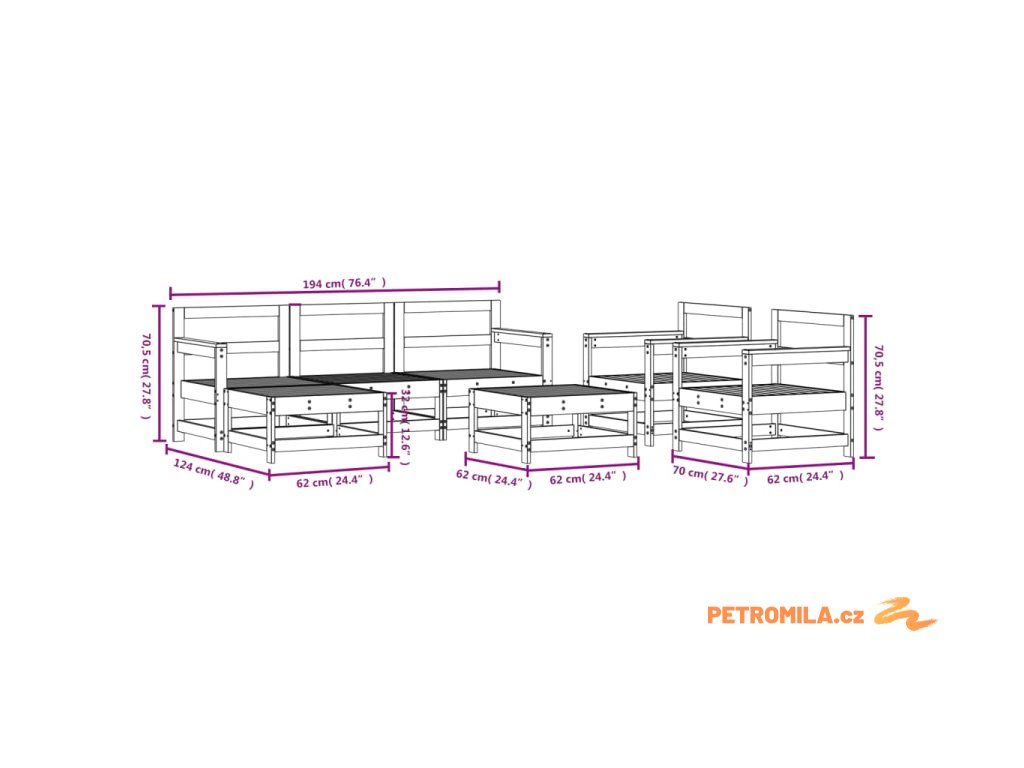 7dílná zahradní sedací souprava a podušky impregnovaná borovice