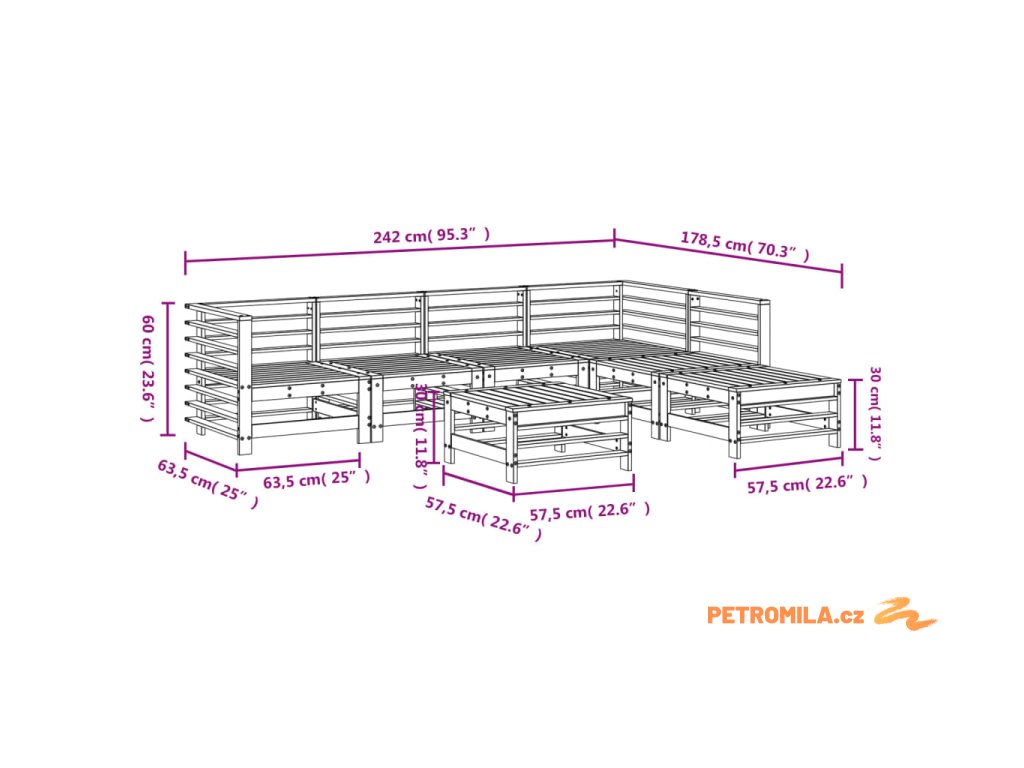 7dílná zahradní sedací souprava a podušky impregnovaná borovice