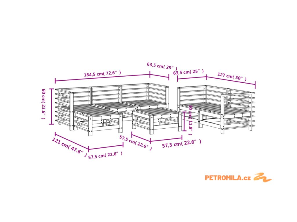 6dílná zahradní sedací souprava a podušky impregnovaná borovice