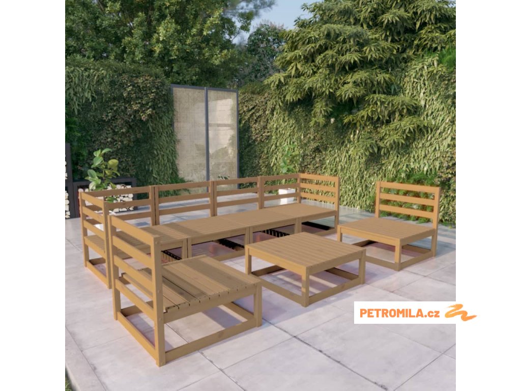 7dílná zahradní sedací souprava medově hnědá masivní borovice