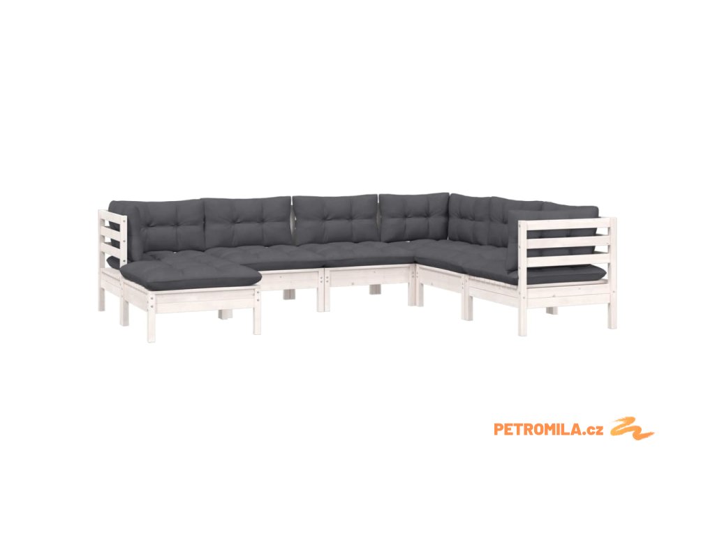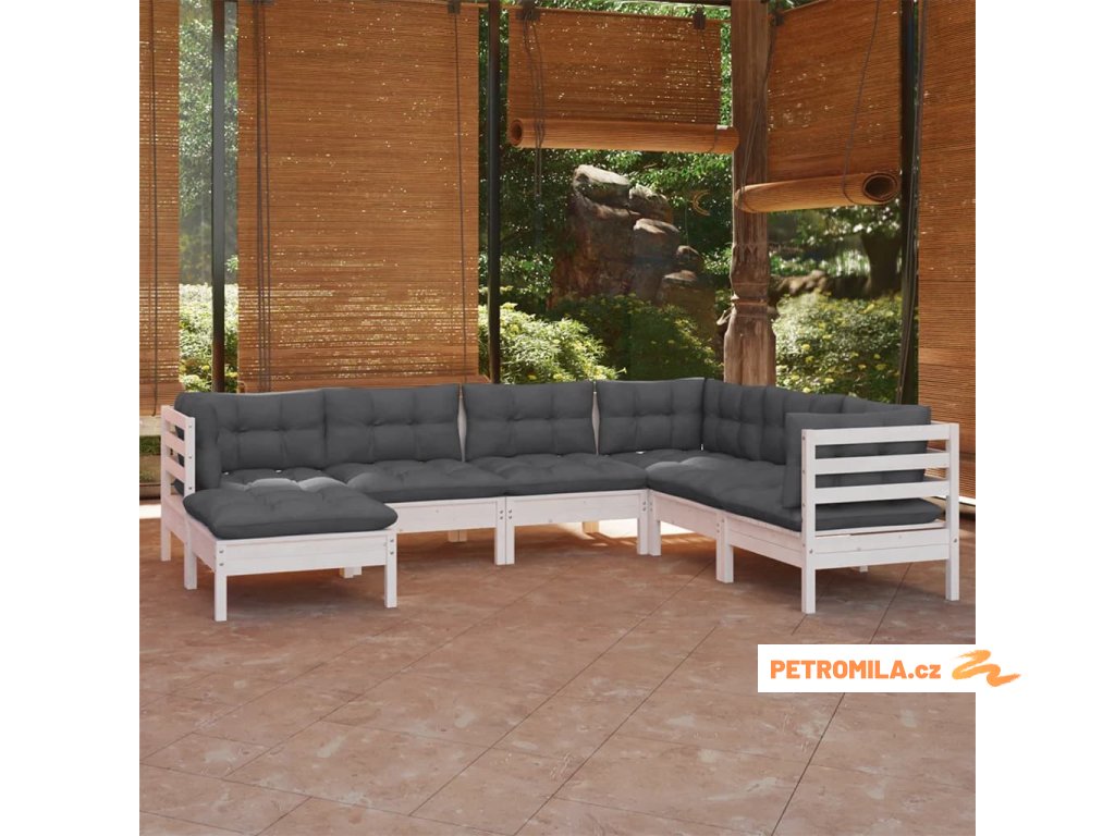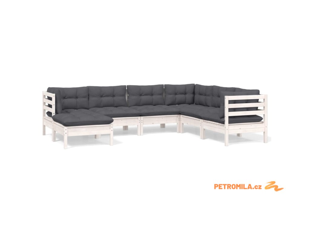 7dílná zahradní sedací souprava podušky bílá masivní borovice