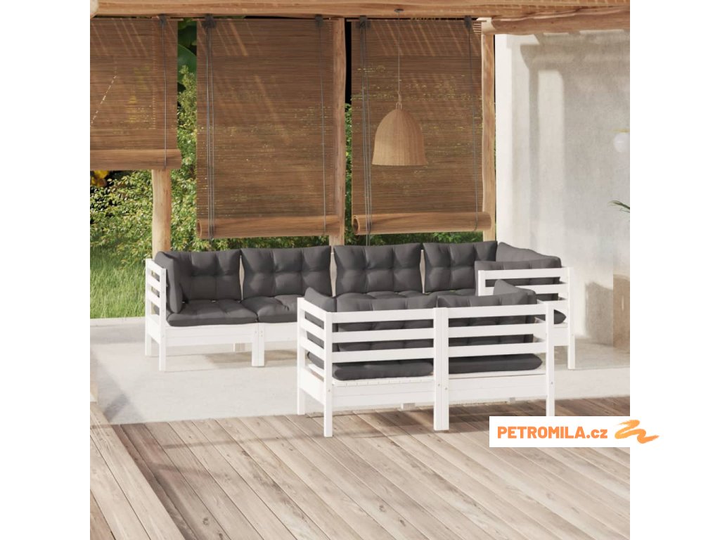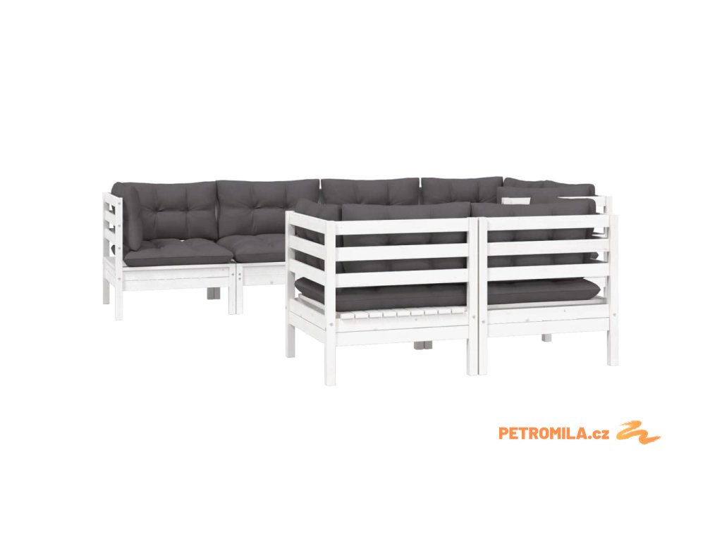 7dílná zahradní sedací souprava podušky bílá masivní borovice