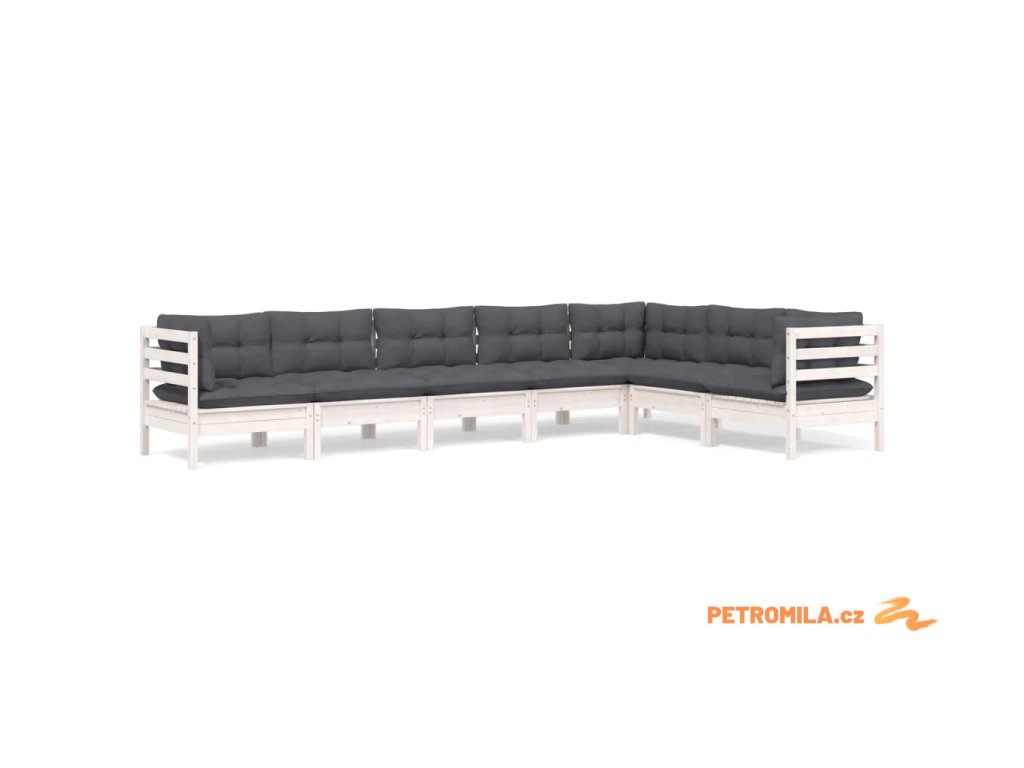 7dílná zahradní sedací souprava podušky bílá masivní borovice