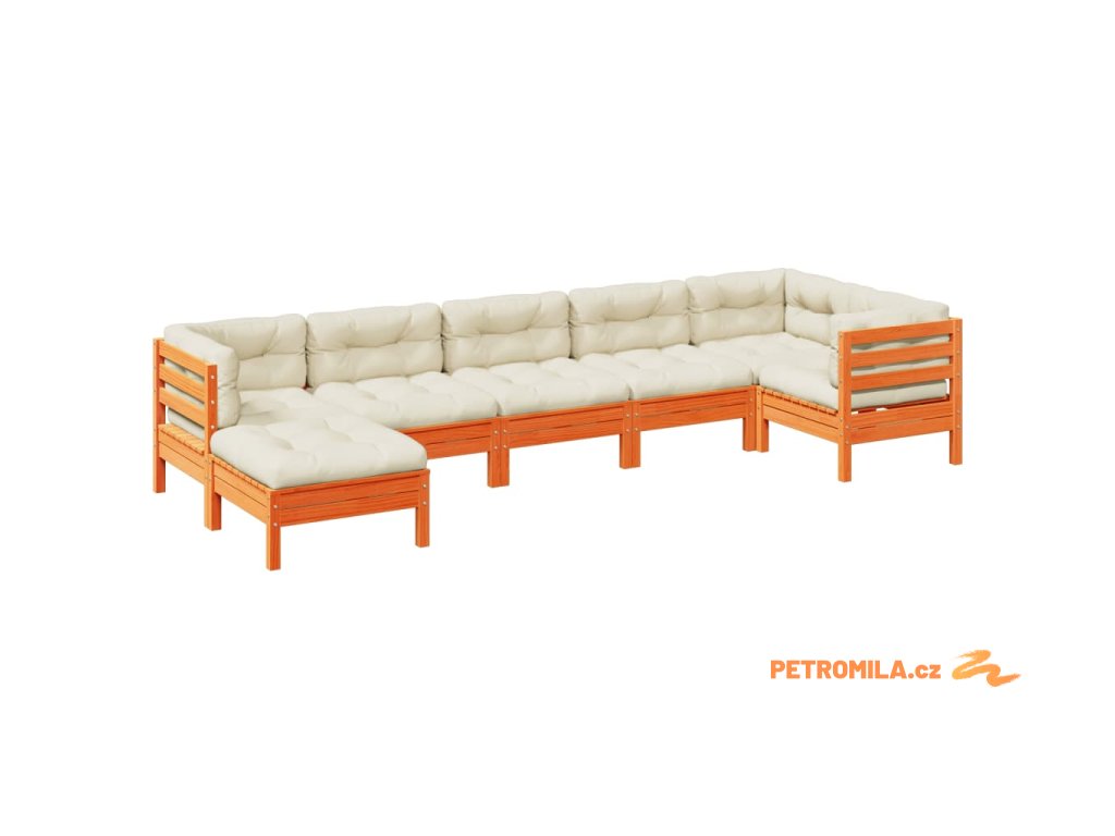 7dílná zahradní sedací souprava podušky voskově hnědá borovice