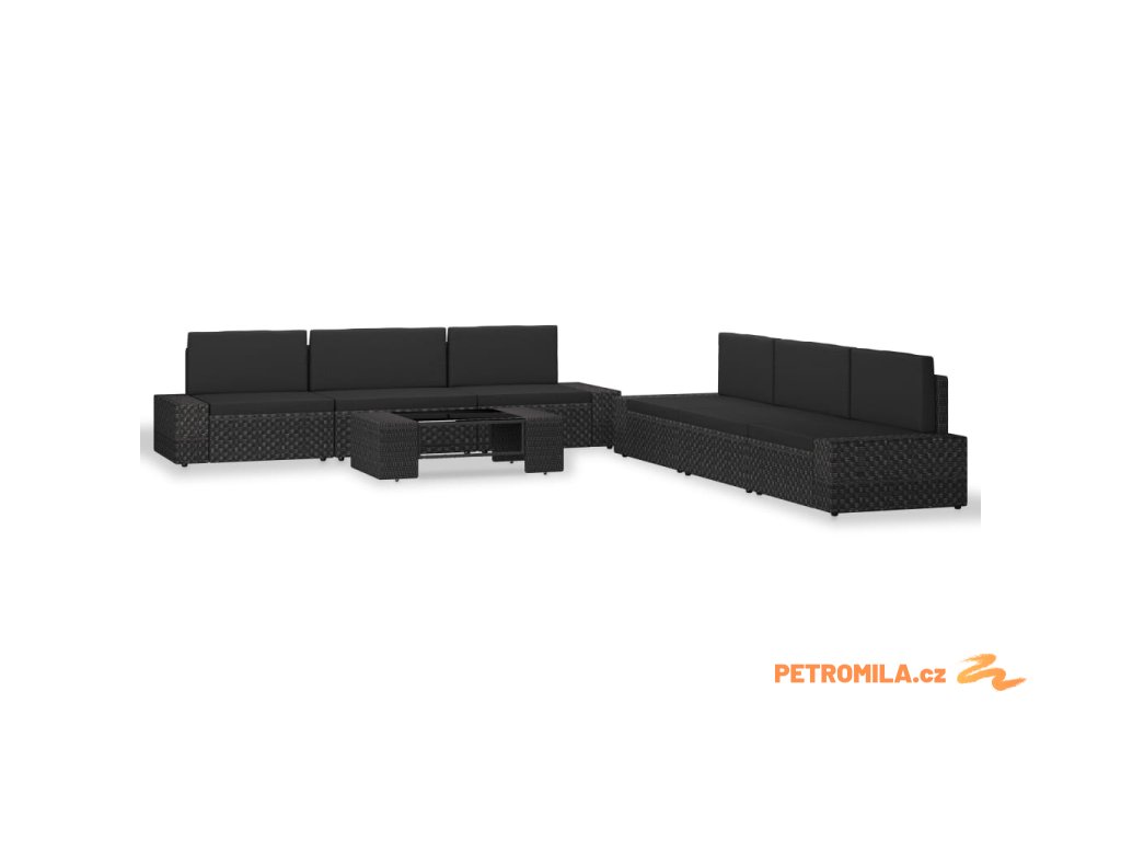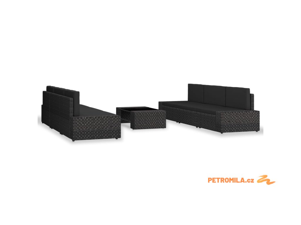 7dílná zahradní sedací souprava polyratan černá