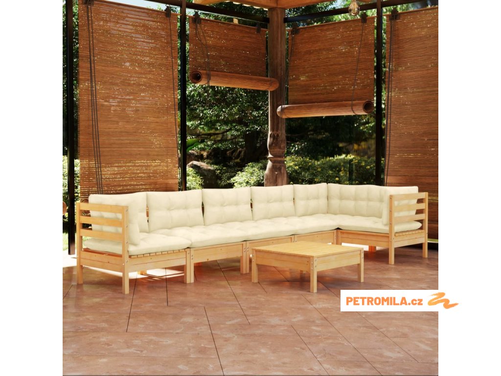 7dílná zahradní sedací souprava s krémovými poduškami borovice