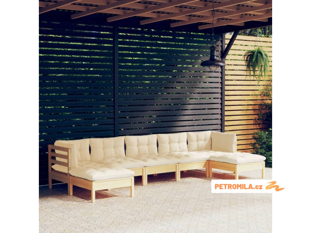 7dílná zahradní sedací souprava s krémovými poduškami borovice