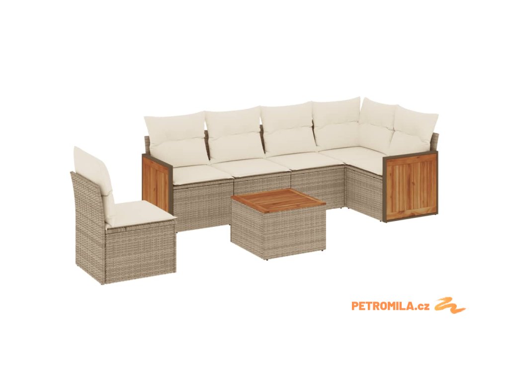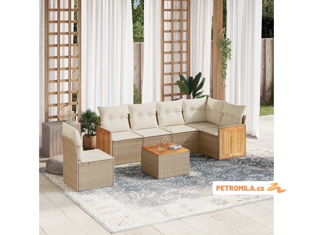 7dílná zahradní sedací souprava s poduškami béžová polyratan