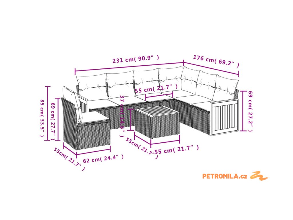 Tato zahradní sedací souprava je dokonalým doplňkem vaší zahrady, terasy nebo dvorku a poskytne vám pohodlné a příjemné místo, kde si můžete povídat s rodinou a přáteli nebo jen tak odpočívat a užívat si pobyt venku.