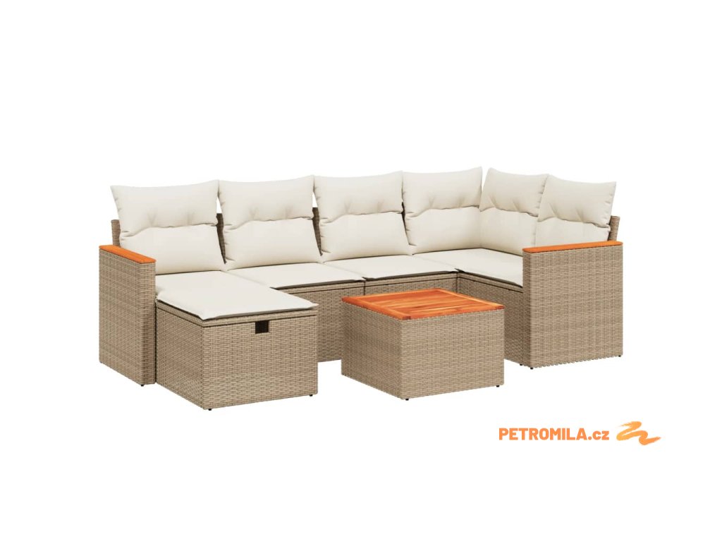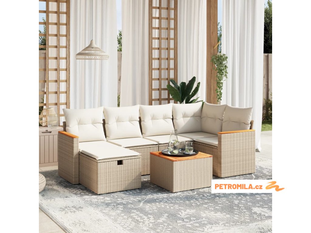 7dílná zahradní sedací souprava s poduškami béžová polyratan