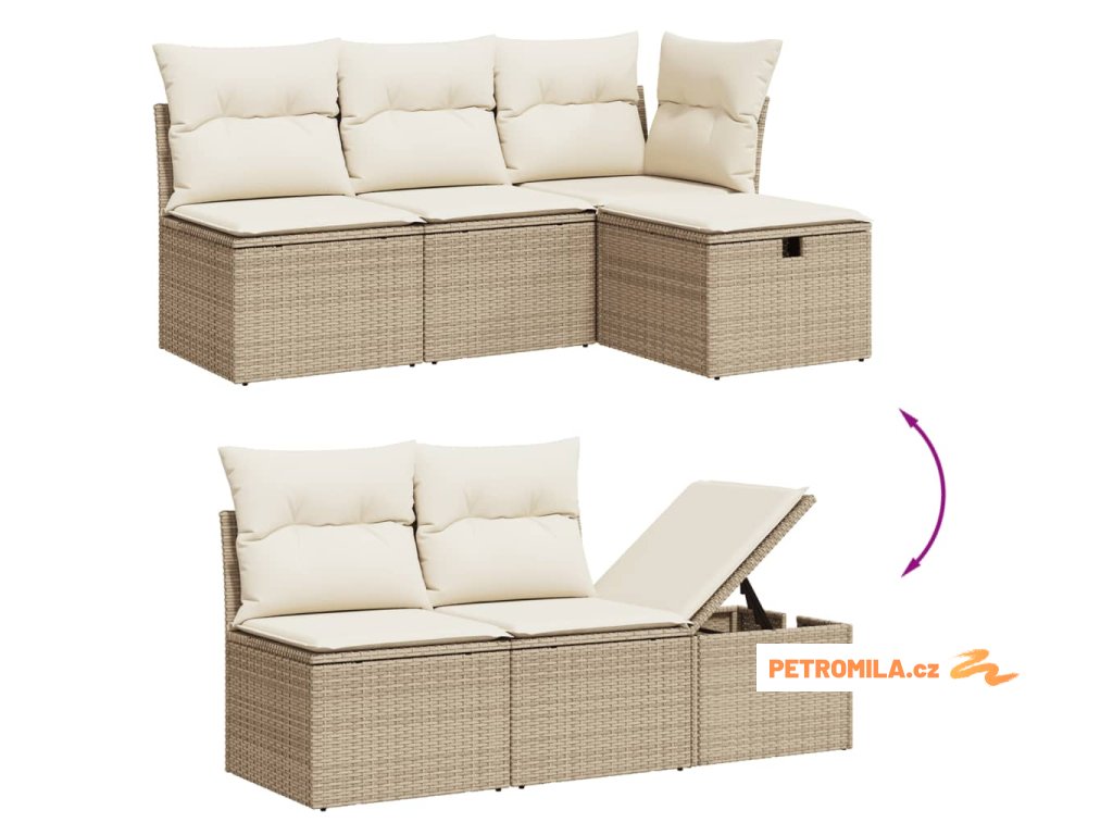Sada zahradních pohovek s polštářem 9 pcs Béžová Poly ratan