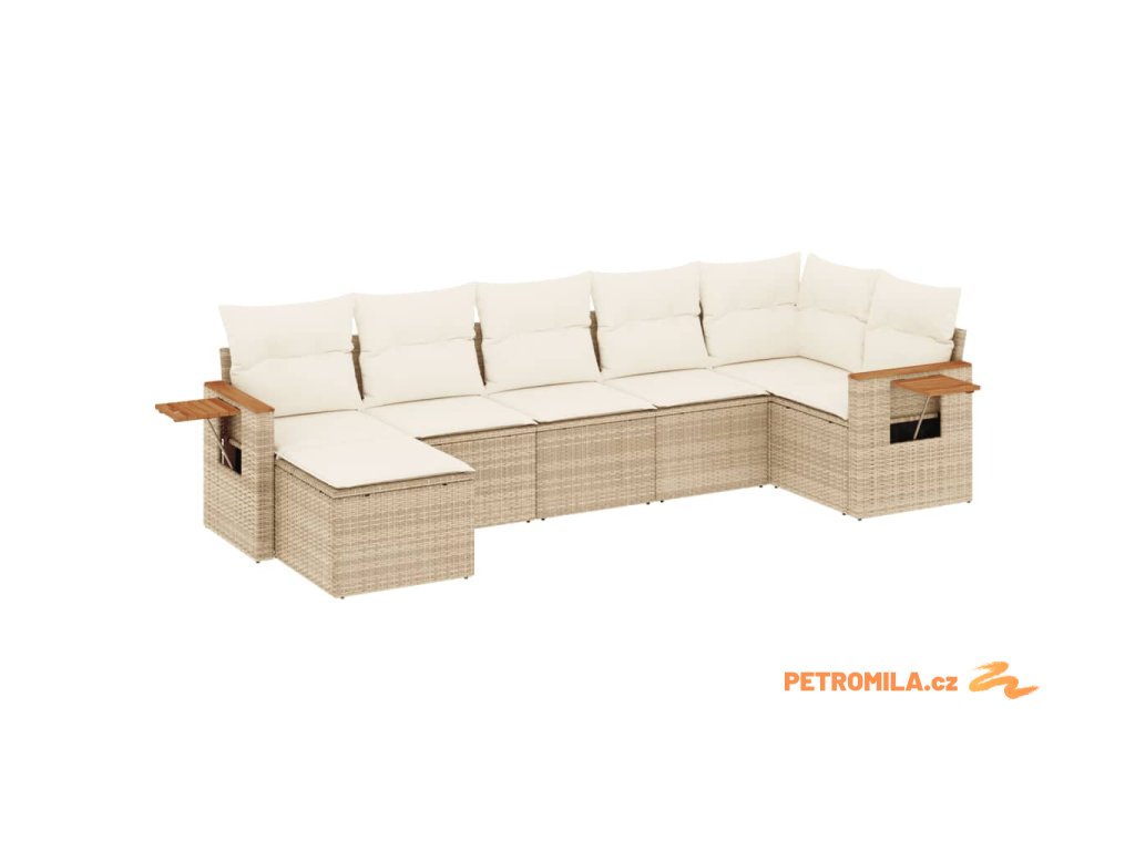 7dílná zahradní sedací souprava s poduškami béžová polyratan