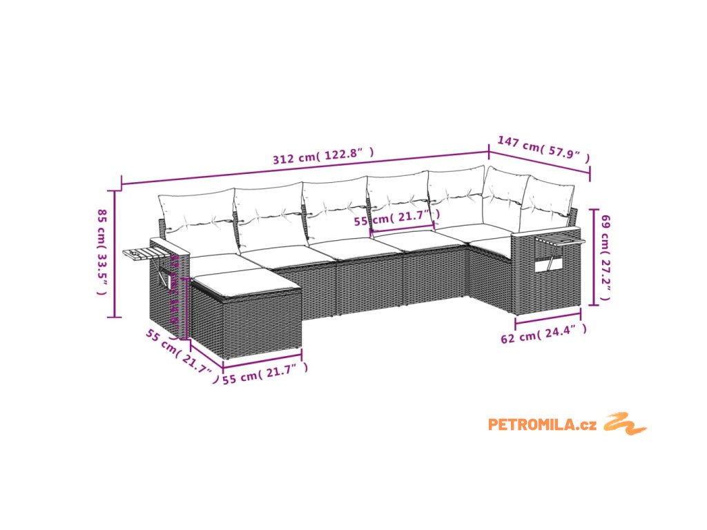 Sada zahradních pohovek s polštářem 8 pcs Béžová Poly ratan