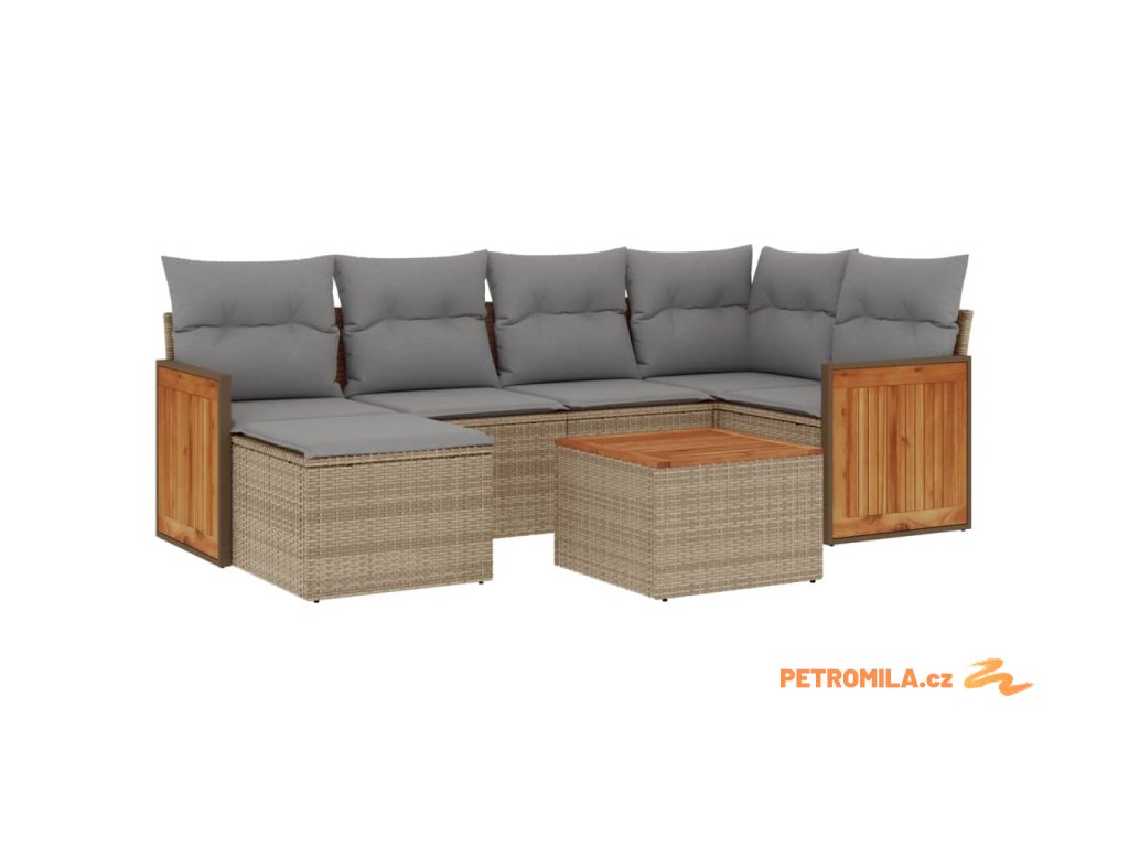 7dílná zahradní sedací souprava s poduškami béžová polyratan