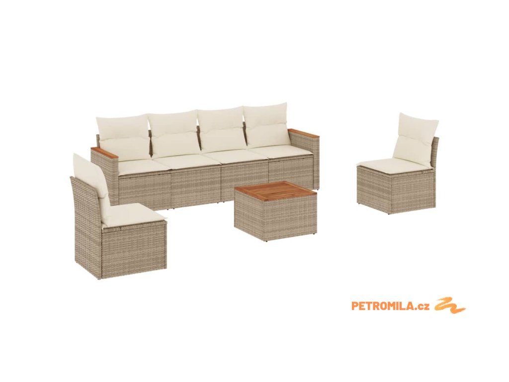 7dílná zahradní sedací souprava s poduškami béžová polyratan