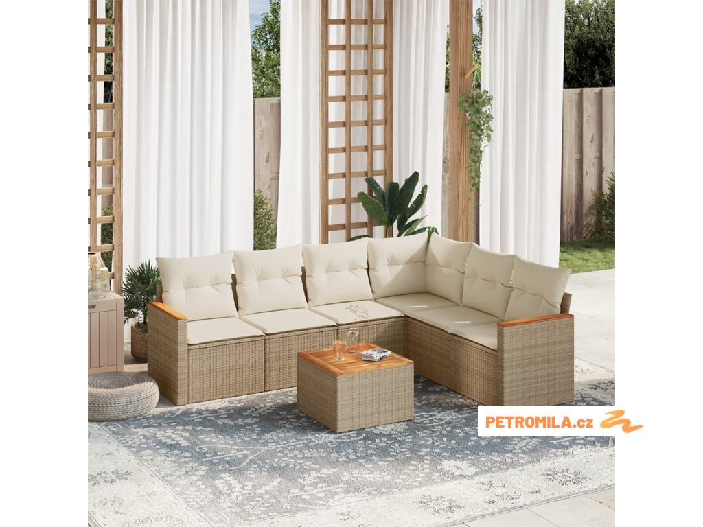 7dílná zahradní sedací souprava s poduškami béžová polyratan