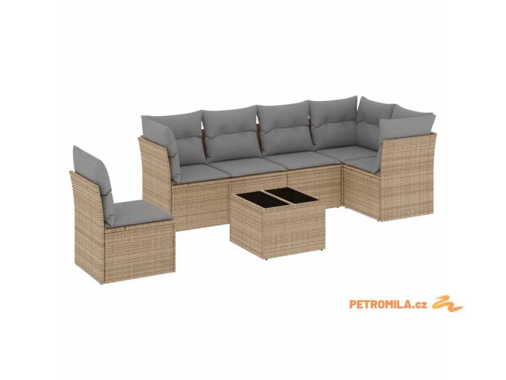 7dílná zahradní sedací souprava s poduškami béžová polyratan