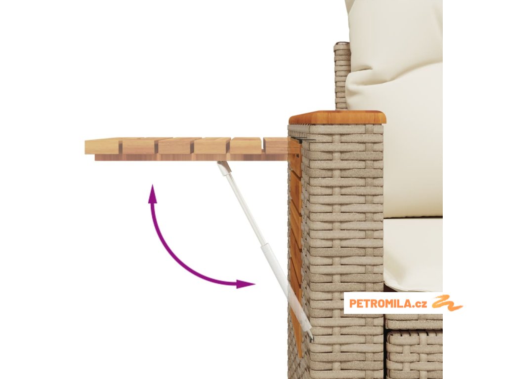 - Pohodlný odkládací stolek: Tento venkovní nábytek má na područkách skládací stolek s plynovou pružinou, jež poskytuje praktické místo pro vaše nezbytnosti, kde je budete mít na dosah ruky.