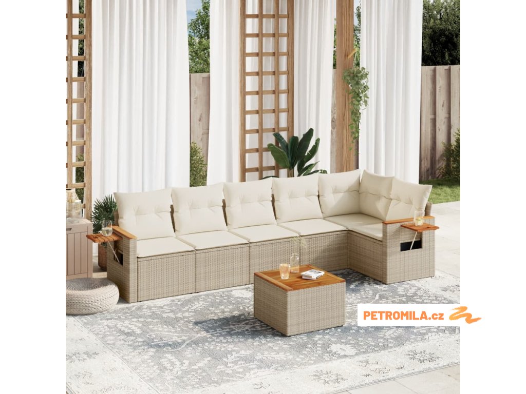 7dílná zahradní sedací souprava s poduškami béžová polyratan