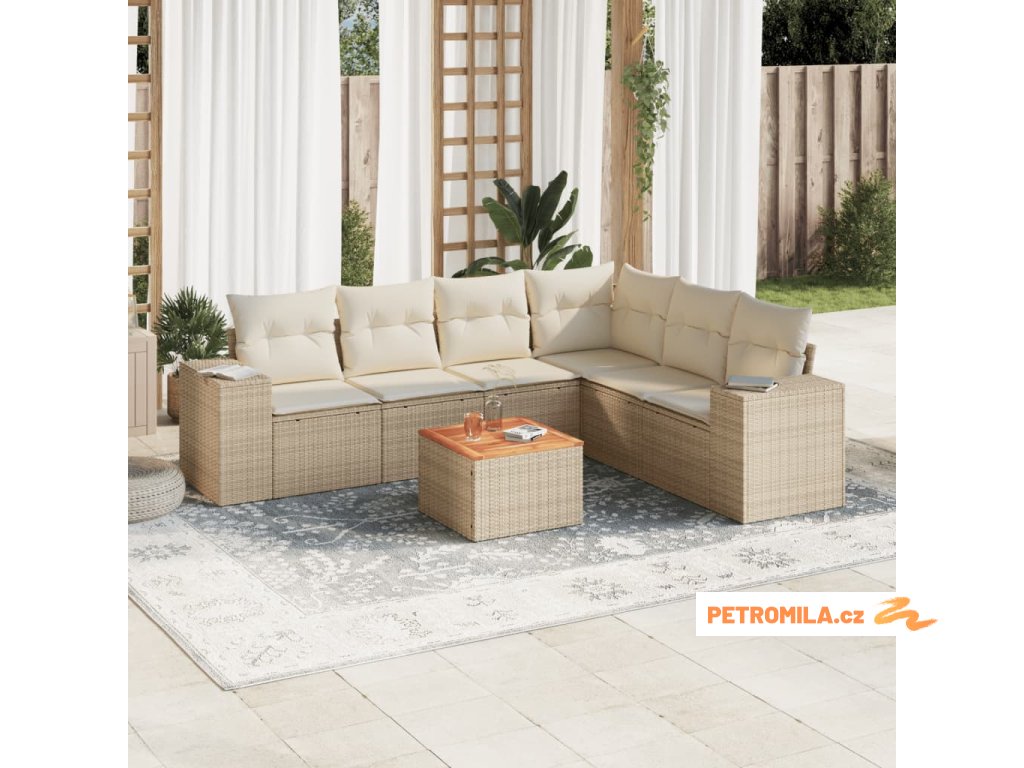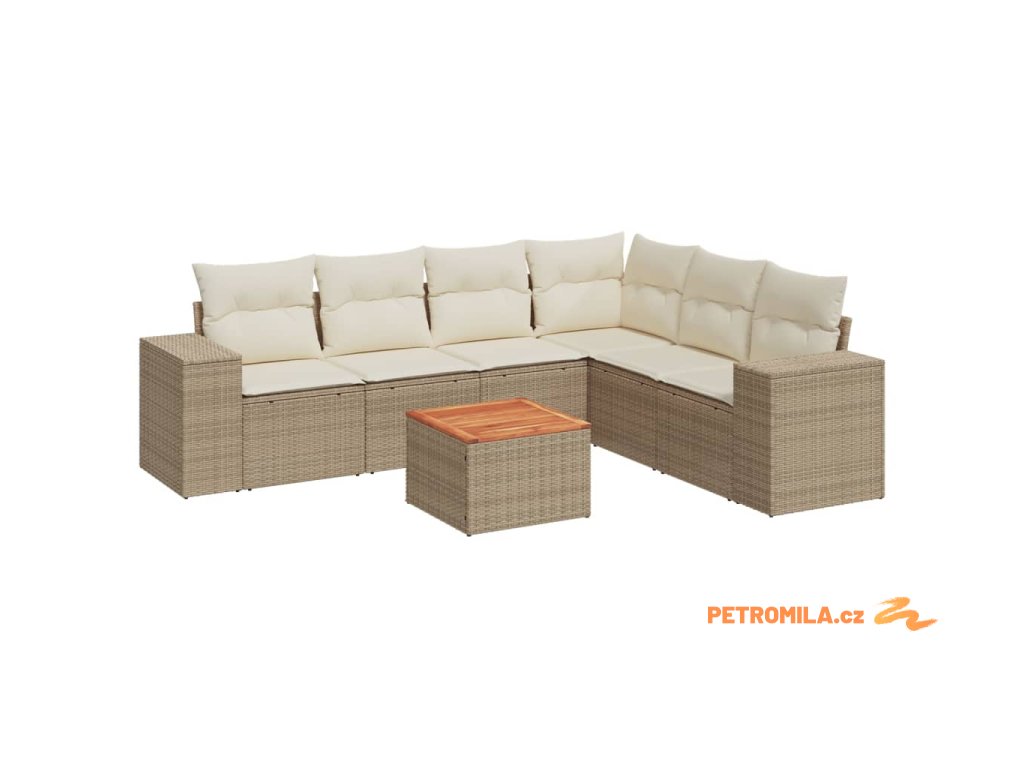 7dílná zahradní sedací souprava s poduškami béžová polyratan