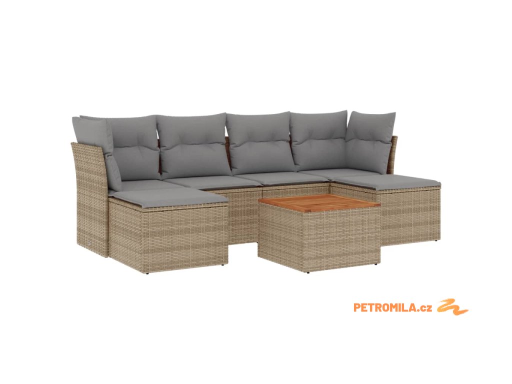 7dílná zahradní sedací souprava s poduškami béžová polyratan
