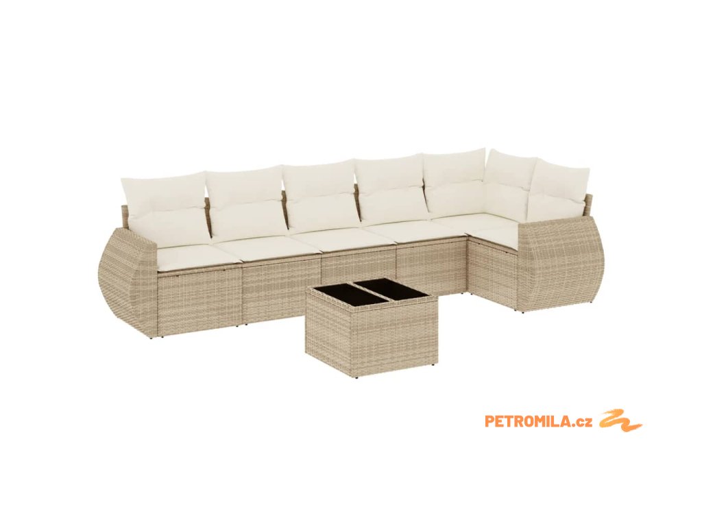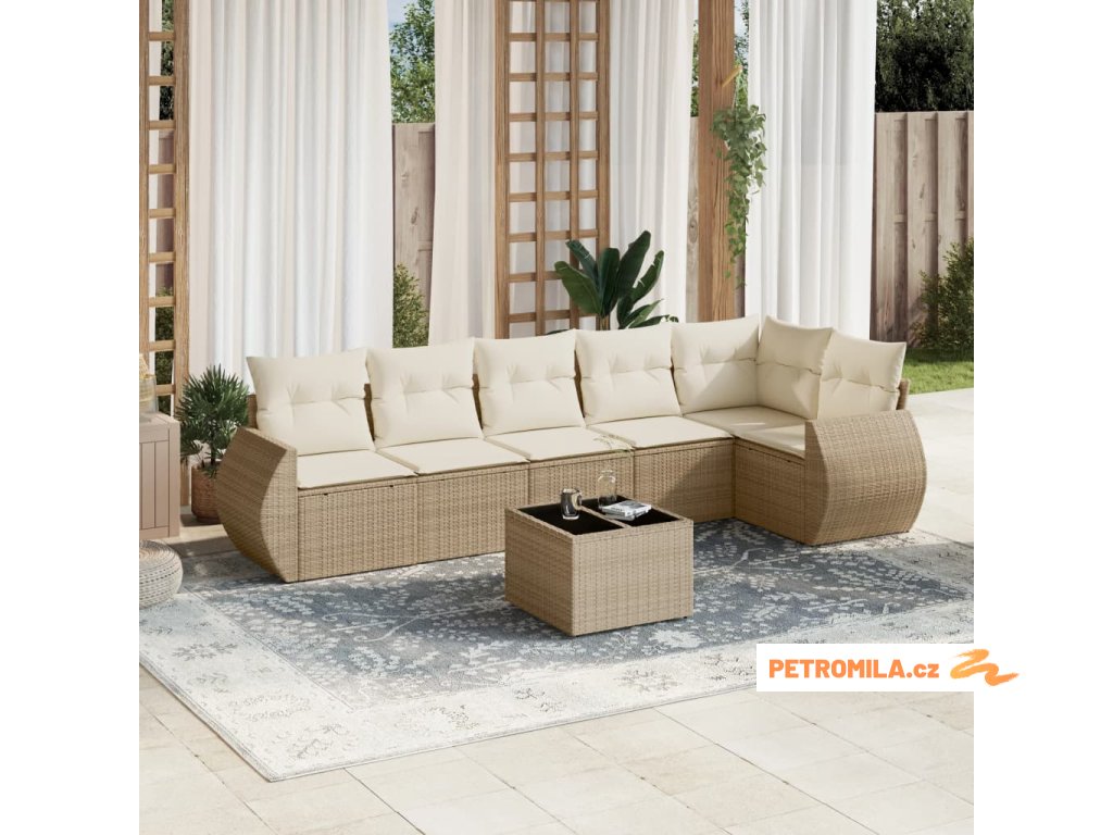 7dílná zahradní sedací souprava s poduškami béžová polyratan
