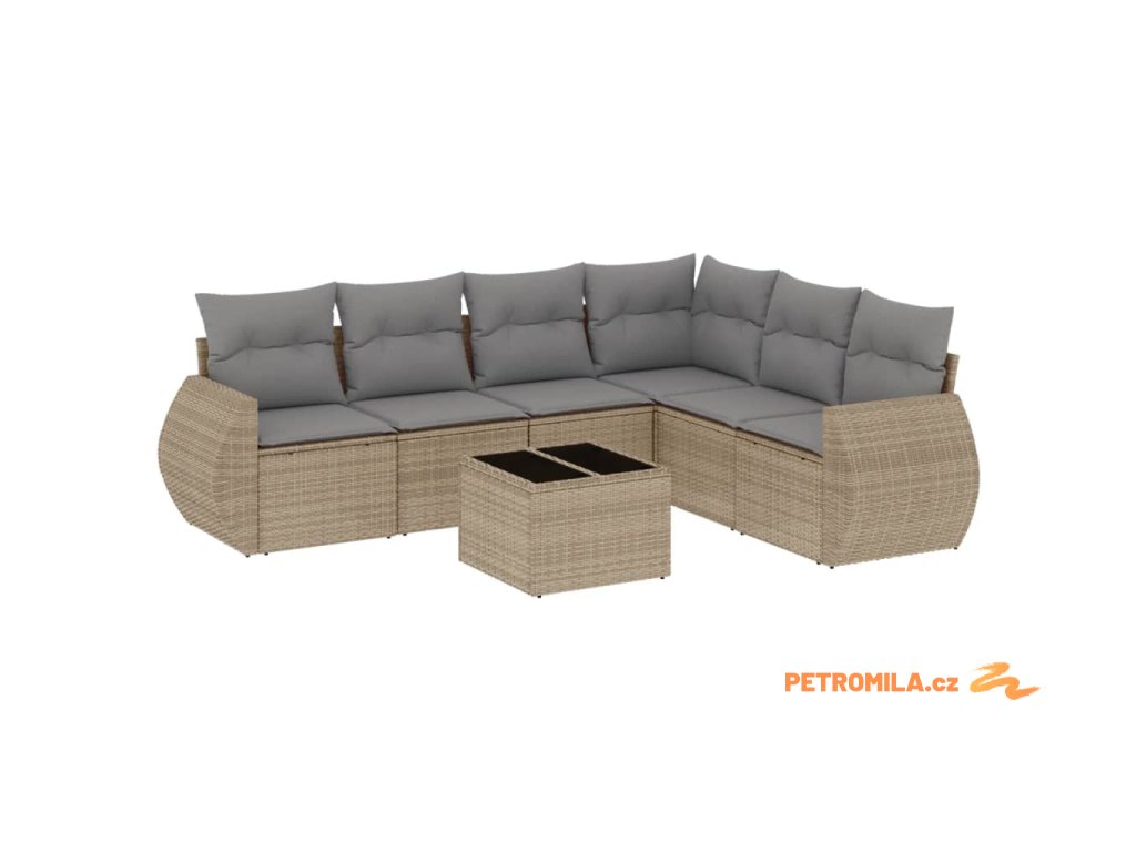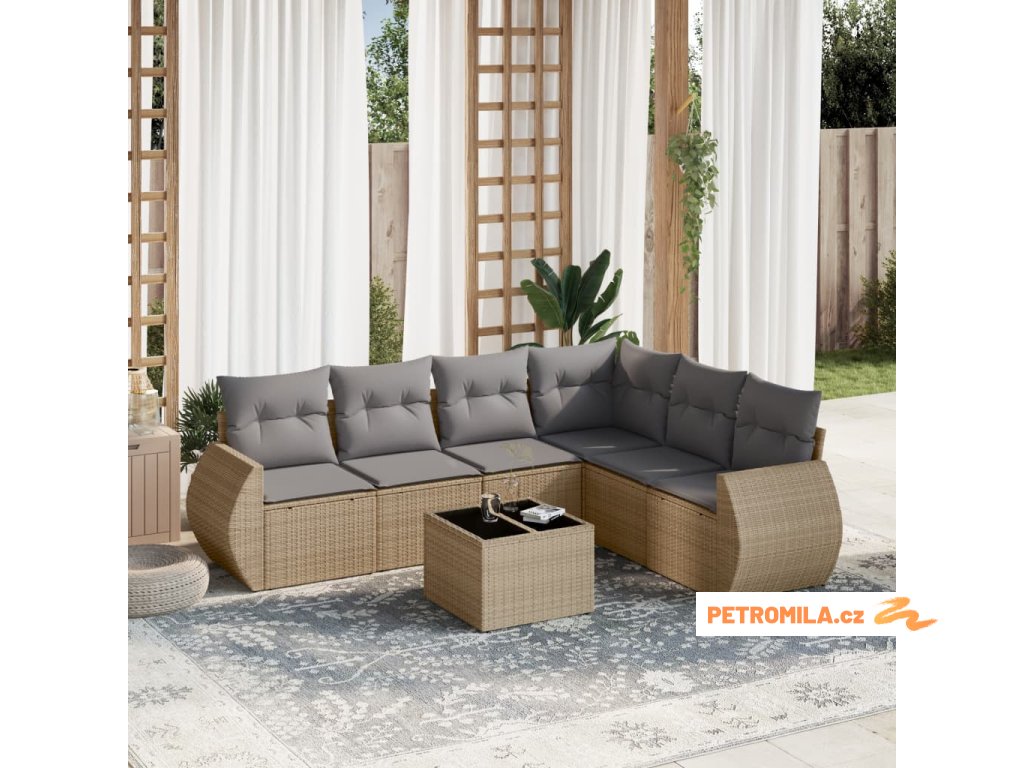 7dílná zahradní sedací souprava s poduškami béžová polyratan