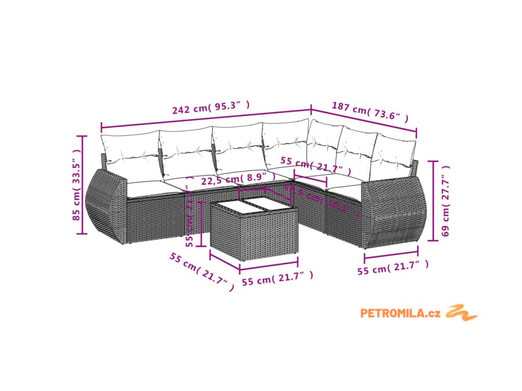 Tato zahradní sedací souprava je dokonalým doplňkem vaší zahrady, terasy nebo dvorku a poskytne vám pohodlné a příjemné místo, kde si můžete povídat s rodinou a přáteli nebo jen tak odpočívat a užívat si pobyt venku.