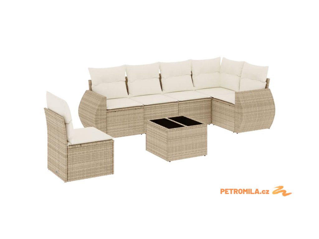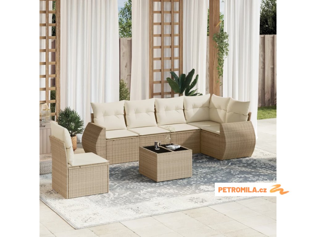 7dílná zahradní sedací souprava s poduškami béžová polyratan