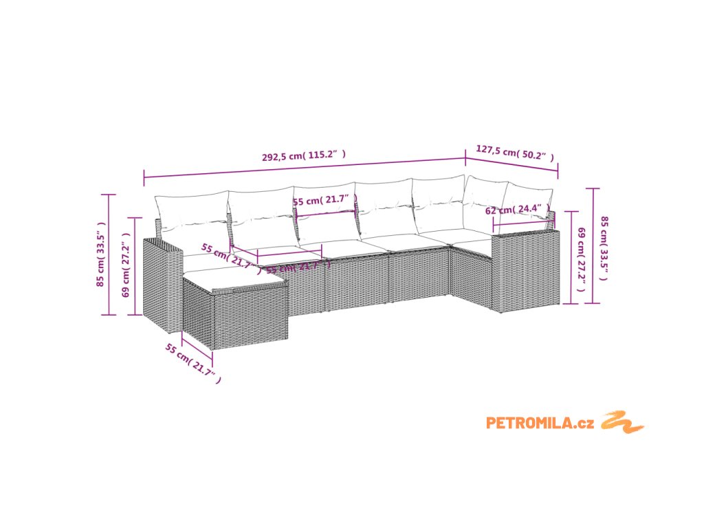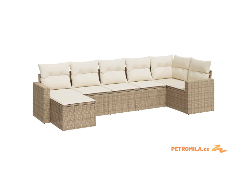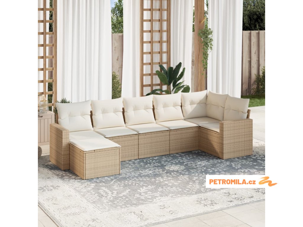 7dílná zahradní sedací souprava s poduškami béžová polyratan