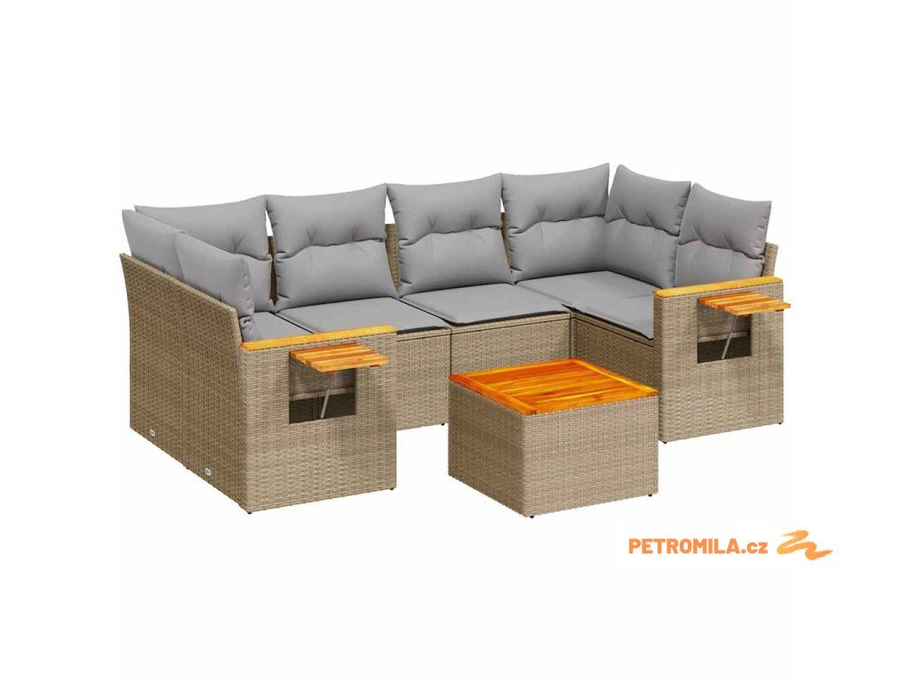 7dílná zahradní sedací souprava s poduškami béžová polyratan