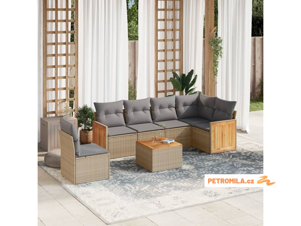 7dílná zahradní sedací souprava s poduškami béžová polyratan